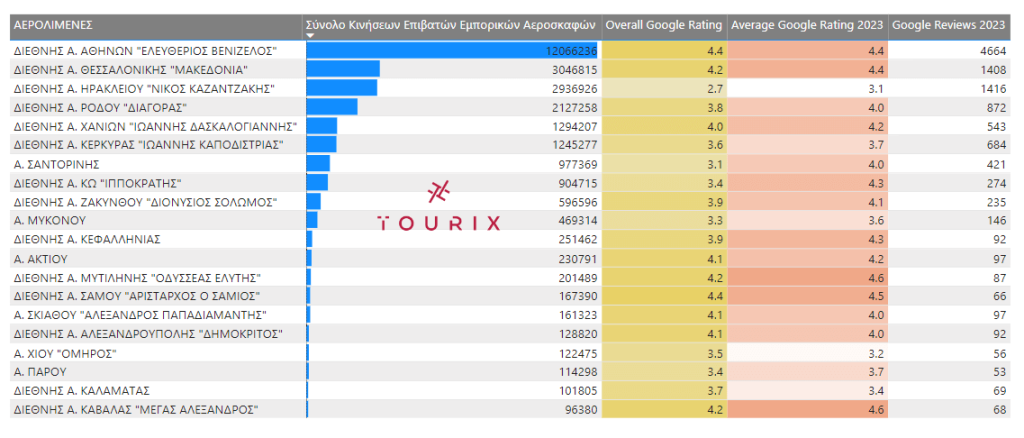 Η νέα ανάλυση της Tourix, εστιάζει στα αεροδρόμια της Ελλάδας με τη μεγαλύτερη επιβατική κίνηση για το Α’ Εξάμηνο του 2023 και στις αξιολογήσεις που έλαβαν από περισσότερους 11.000 χρήστες του διαδικτύου.