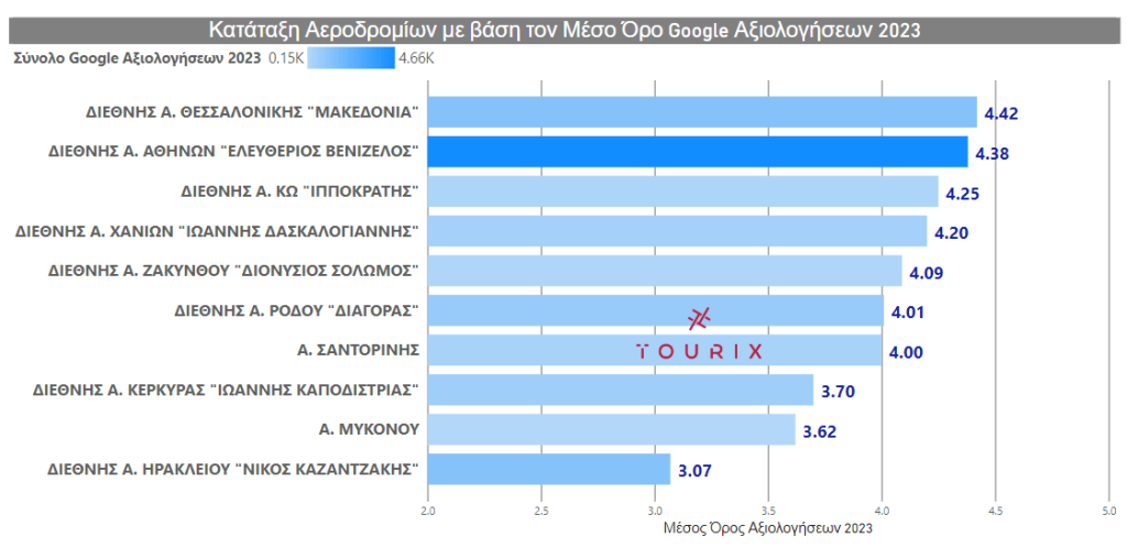 Κατάταξη αεροδρομίων της Ελλάδας με βάση τις αξιολογήσεις των χρηστών του διαδικτύου (Α’ Εξάμηνο 2023)