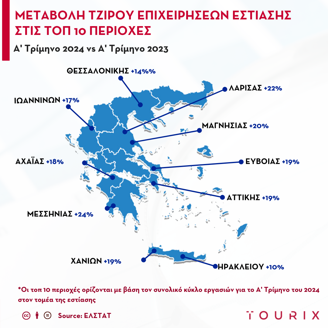Οι τοπ περιοχές της Βόρειας Ελλάδας στην αύξηση τζίρου στην εστίαση ήταν η Ημαθία και το Κιλκίς, ξεπερνώντας και οι δύο το 28%.