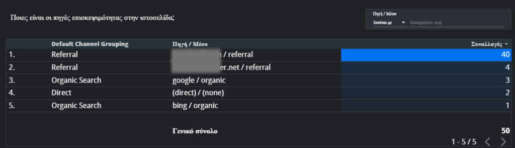 Αρχικά, βλέπουμε την απόδοση last click μέσω του Universal Analytics, όπου οι μετατροπές διαμοιράζονται αυστηρά σε 5 συγκεκριμένα κανάλια.