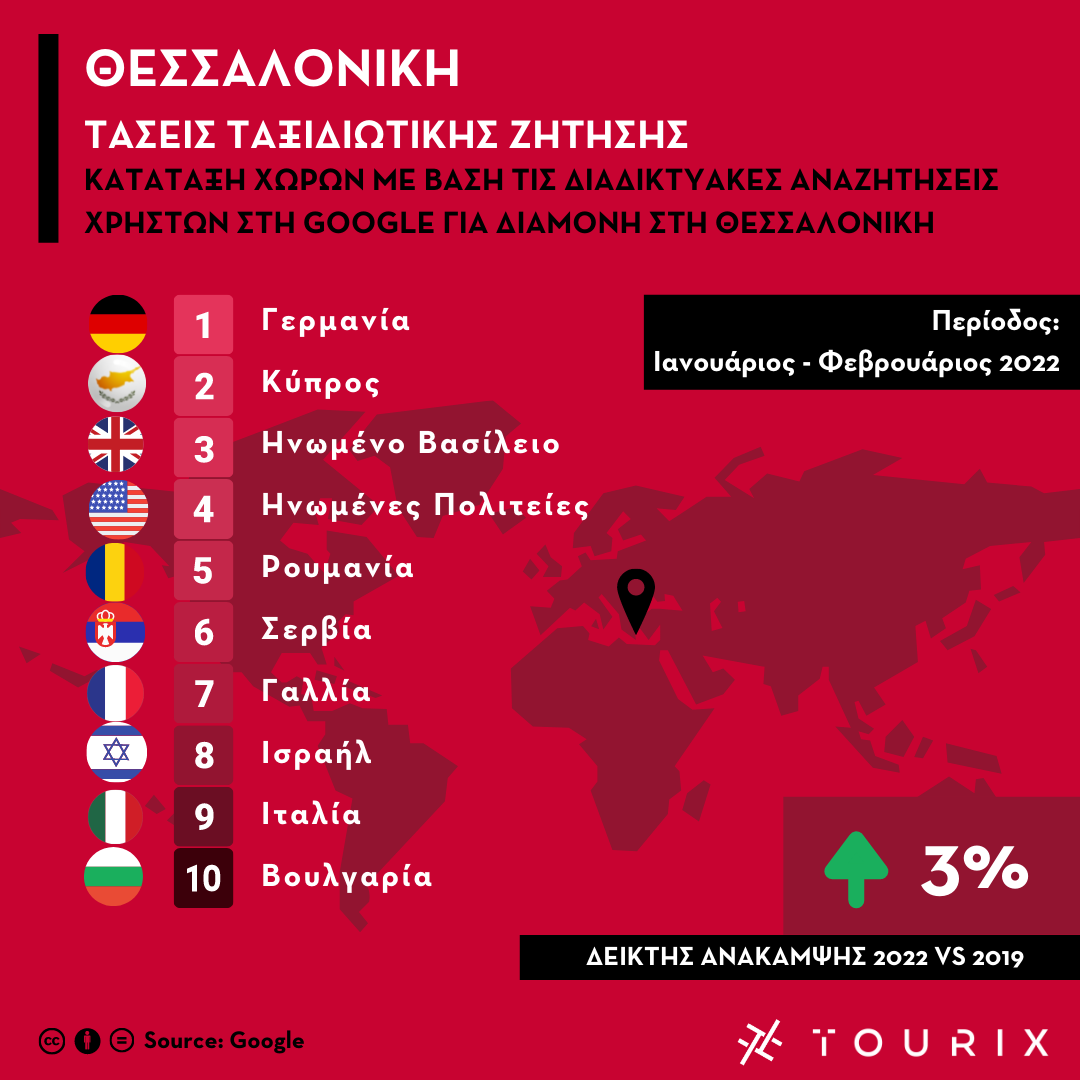 Επισημάνσεις σχετικά με τις τάσεις ταξιδιωτικής ζήτησης μέσω διαδικτύου για τη Θεσσαλονίκη [Επικαιροποιημένα στοιχεία Φεβρουαρίου]: