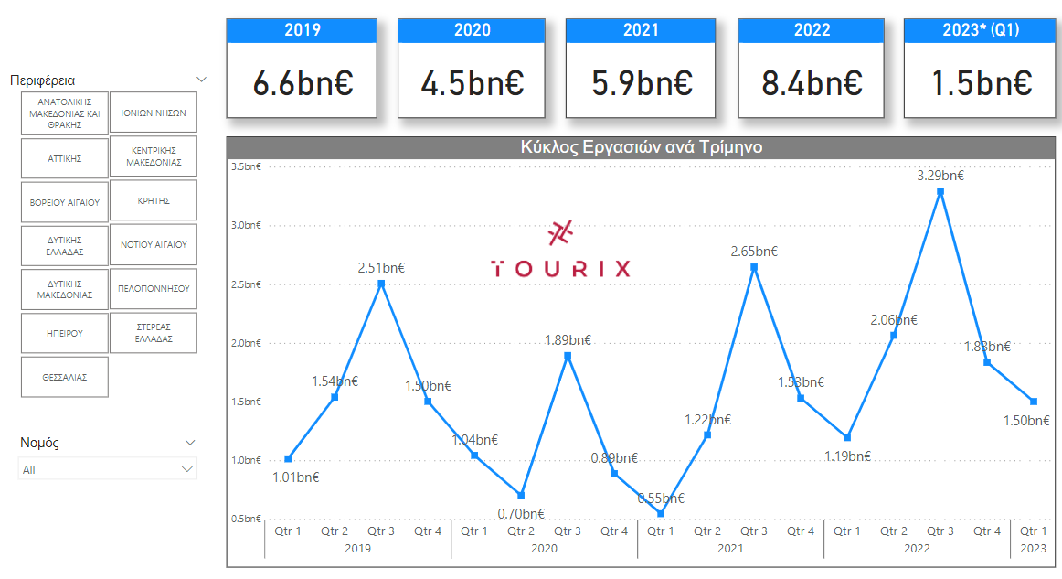 Το 2023 παρατηρείται πλήρης ανάκαμψη, ακόμη και αυξημένοι τζίροι, με το πρώτο τρίμηνο να είναι το καλύτερο σε σχέση με τα πρώτα τρίμηνα των προηγούμενων ετών προς εξέταση. Αυτό δίνει ενδείξεις για ένα 2023 με υποσχόμενο μεγαλύτερο τζίρο και από αυτόν του 2022. Παρατηρούμε ότι το πρώτο τρίμηνο κάθε έτους είναι το μικρότερο σε τζίρο.