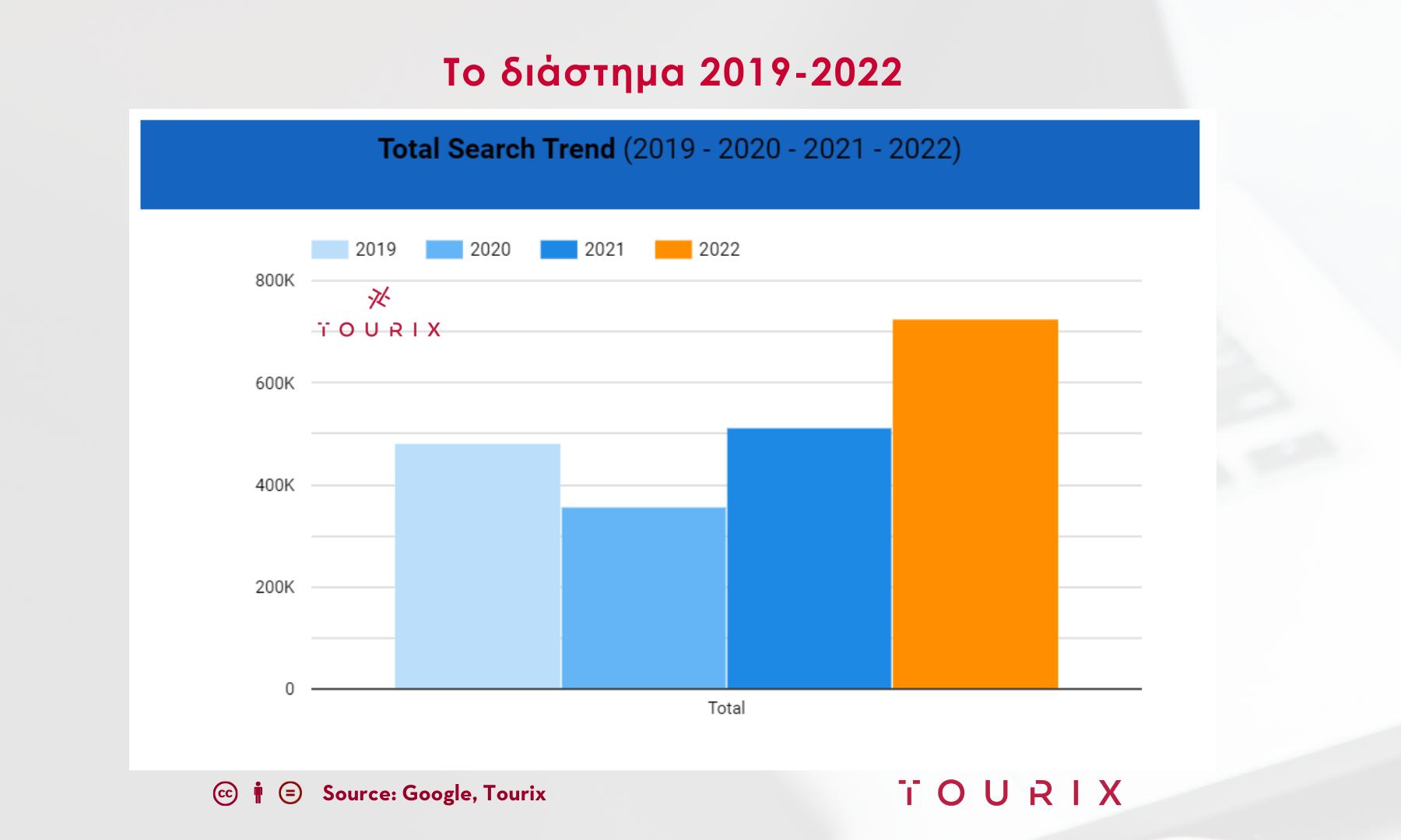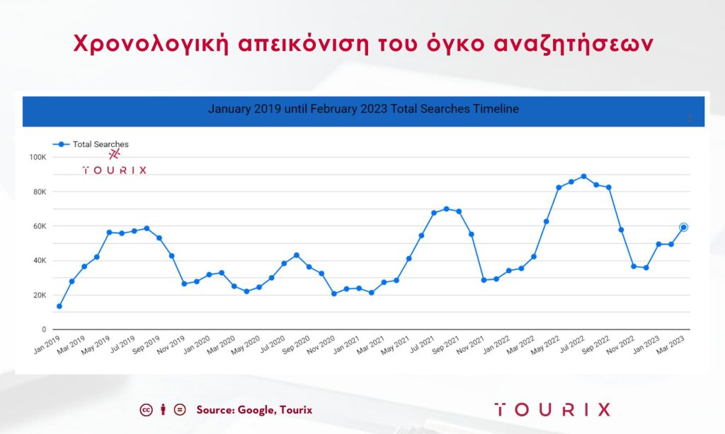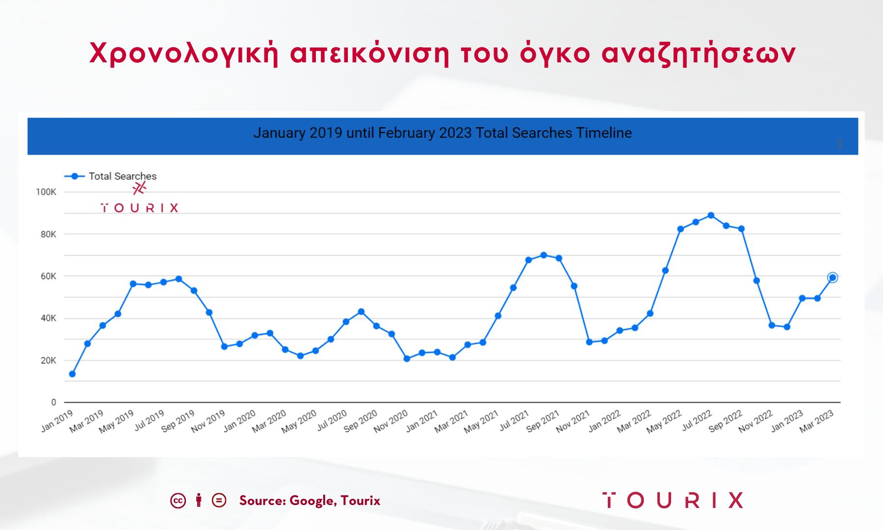 - Οι καλοκαιρινοί μήνες Ιούλιο με Αύγουστο παρατηρείται ο μεγαλύτερος όγκος αναζητήσεων μέσα στο έτος.
