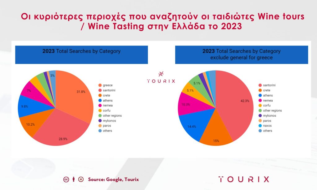 Υψηλό το ενδιαφέρον για wine tours και wine tasting στην Ελλάδα φάνηκε να είναι το 2022, όπως αυτό αποτυπώθηκε από τις αναζητήσεις χρηστών στην πλατφόρμα της Google. Σύμφωνα με την έρευνα της Tourix, το 2022 ειχαμε αυξηση κατά 41% των αναζητήσεων συνολικά σε σχέση με το 2021 και παρόμοια αύξηση κατά 42% των αναζητήσεων για το α΄τρίμηνο του 2023 σε σχέση με το α΄ τρίμηνο του 2022.