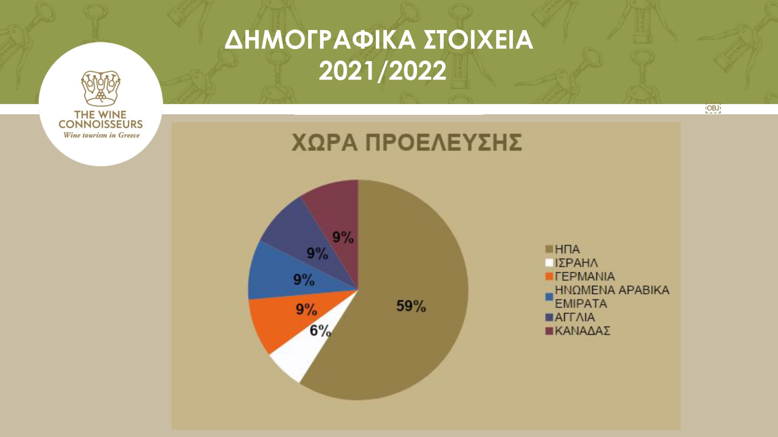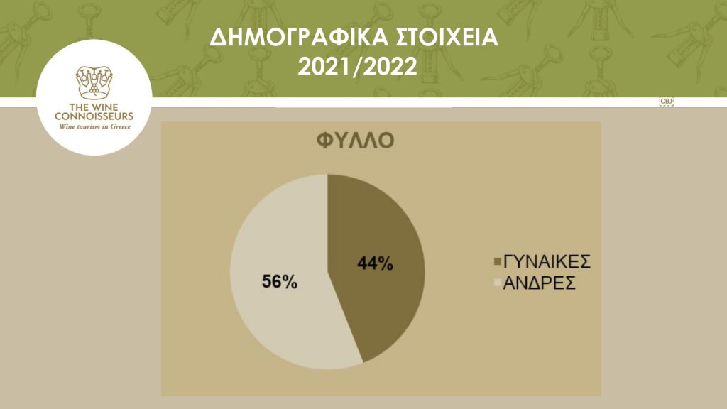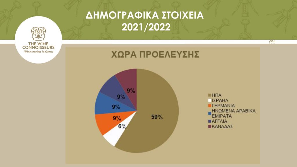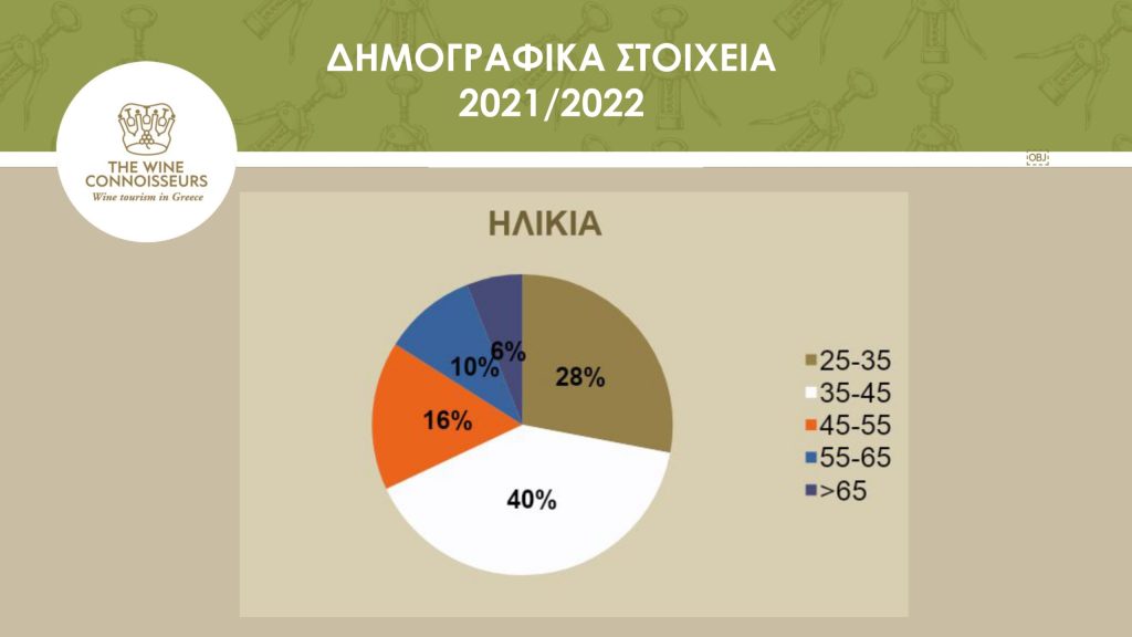 Όπως δήλωσε η κα Ανδριάνα Φόη από την The Wine Connoisseurs “Αν και ο οινοτουρισμός είναι μια ανερχόμενη εναλλακτική μορφή τουρισμού στην χώρα μας , η αναγνωρισιμότητα και η δημοφιλία που αποκτούν τα ελληνικά κρασιά στο εξωτερικό ωθούν τους επισκέπτες, wine lovers, να επιθυμούν να επισκεφθούν οινοποιεία στην Ελλάδα και να δοκιμάσουν ποιοτικά κρασιά από ελληνικές ποικιλίες. Το 2022 υποδεχθήκαμε περισσότερους επισκέπτες από το 2021. Οι οινοτουρίστες είναι στη πλειοψηφία τους μεταξύ 35-44 ετών, με Πανεπιστημιακή εκπαίδευση , μέσου προς υψηλού εισοδήματος, σχεδόν μοιρασμένοι και στα δύο φύλα. Ένα ακόμη ενδιαφέρον στοιχείο είναι η ζήτηση για Company & Corporate Events, τα οποία οργανώνονται θεματικά γύρω από το κρασί, τα οινοποιεία και τους αμπελώνες της χώρας μας.”