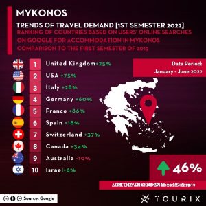 See more detailed data on Travel Tourism Demand online in relation to accommodation for Athens, Thessaloniki, Mykonos, Santorini, Naxos, Rhodes and Elounda: https://analytics.tourix.gr/
